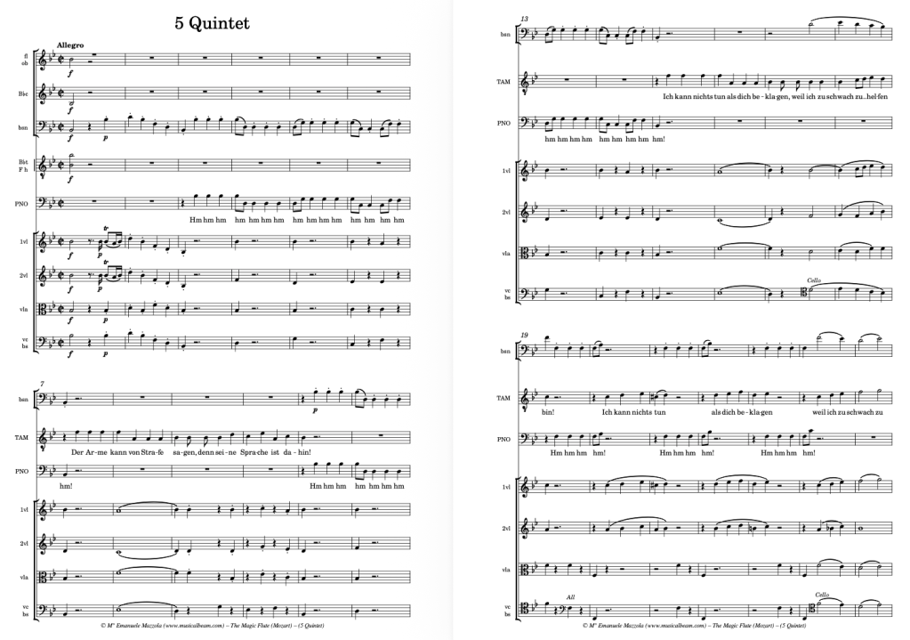 - The Magic Flute for Chamber Ensemble (11-13 players)