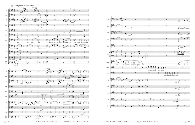 Open12 Editions are similar to the newer Chamber Ensemble versions.. The upgrade includes more options and higher printing standards, including cues in multi-rests and larger fonts. The Open12 Edition of Bohème will remain available until the Chamber Ensemble version is issued.