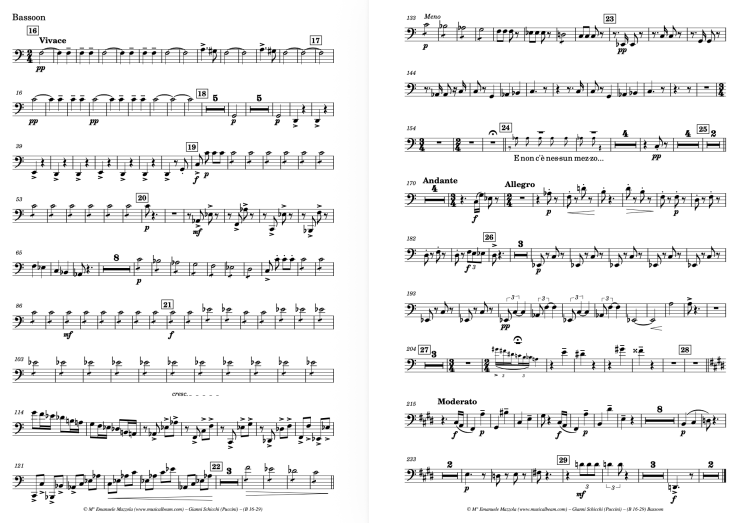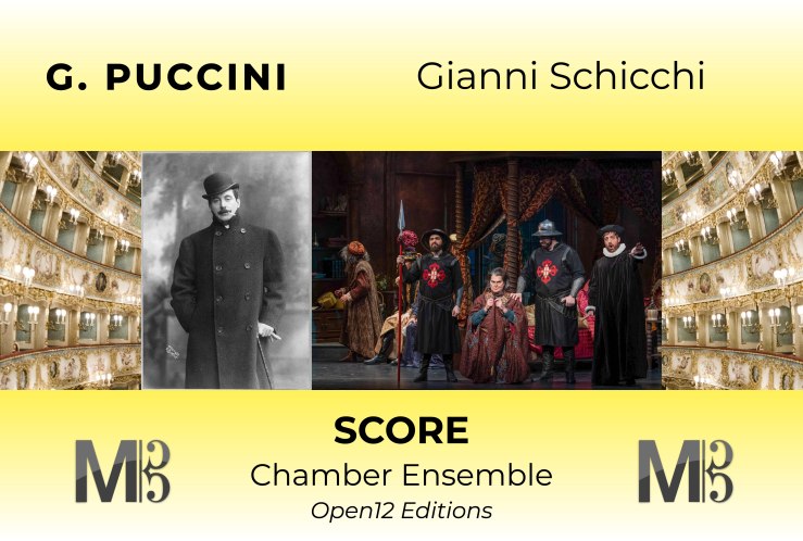 Puccini scored Gianni Schicchi for a large orchestra: full strings, woodwinds in pairs, horns, trumpets, trombones, tuba, harp, celesta, and percussion. While the full orchestra includes around 60 players, the one-act structure and chamber-like ensemble writing allow for reduced orchestrations, commonly used in smaller opera houses. The compact form and tight dramatic pacing make Gianni Schicchi an ideal opera for touring productions, student performances, or comedic interludes in a mixed bill. Schicchi for Chamber Orchestra is under preparation and will require: