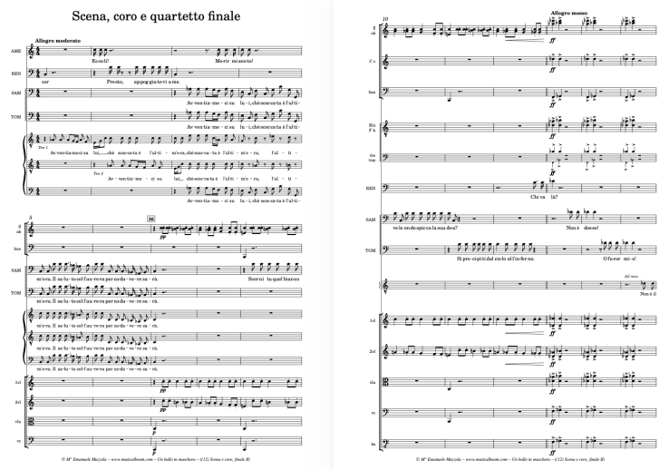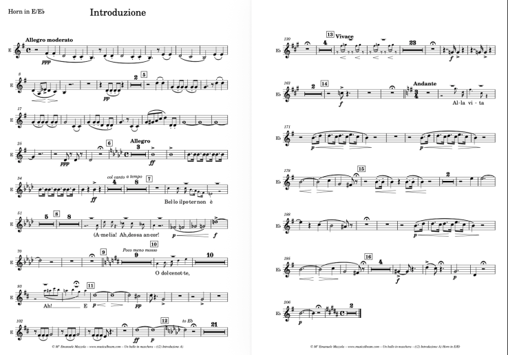 The Smaller Ensemble version is designed for maximum reduction without compromising musical integrity. It features a string quartet, three woodwinds, and piano. The piano part is not a vocal score, but a fully notated performance part, often playable with one hand, intended for the conductor or a designated player. It reinforces the ensemble in forte and fortissimo sections, ensuring depth and rhythmic clarity. With its balanced orchestration across winds, strings, and keyboard percussion, this version requires no special adjustments and offers a complete and practical solution for venues with limited resources or space. Un Ballo in Maschera for Smaller Ensemble is under preparation and will require: