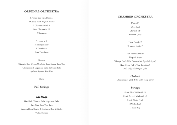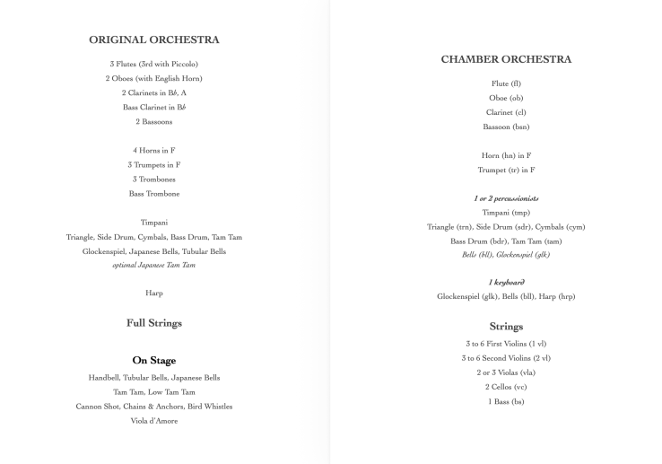 - Madama Butterfly for Chamber Orchestra (19-27 players)