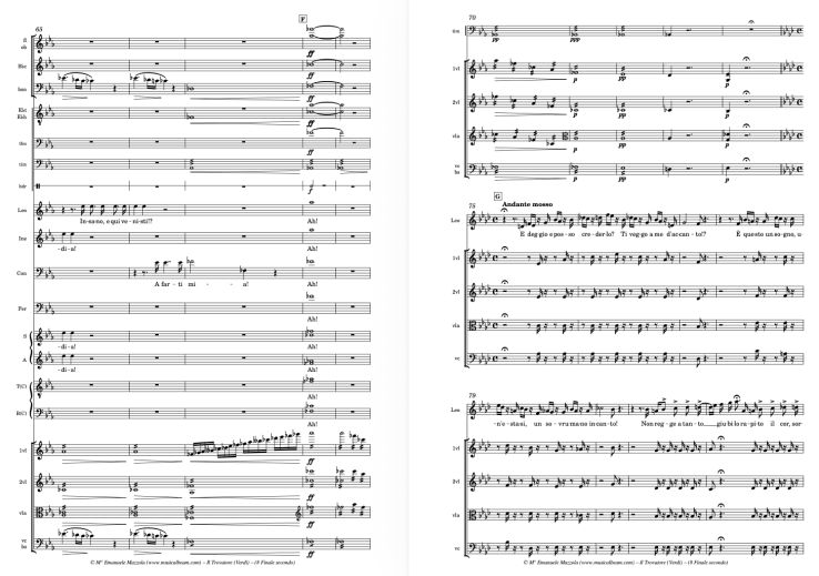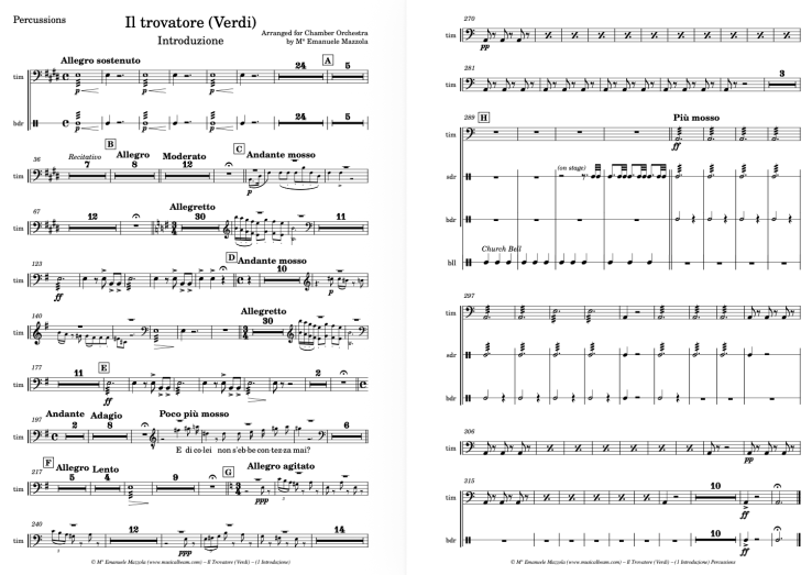 The Smaller Ensemble version is designed for maximum reduction without compromising musical integrity. It features a string quartet, three woodwinds, and piano. The piano part is not a vocal score, but a fully notated performance part, often playable with one hand, intended for the conductor or a designated player. It reinforces the ensemble in forte and fortissimo sections, ensuring depth and rhythmic clarity. With its balanced orchestration across winds, strings, and keyboard percussion, this version requires no special adjustments and offers a complete and practical solution for venues with limited resources or space. Trovatore for Smaller Ensemble is under preparation and will require: